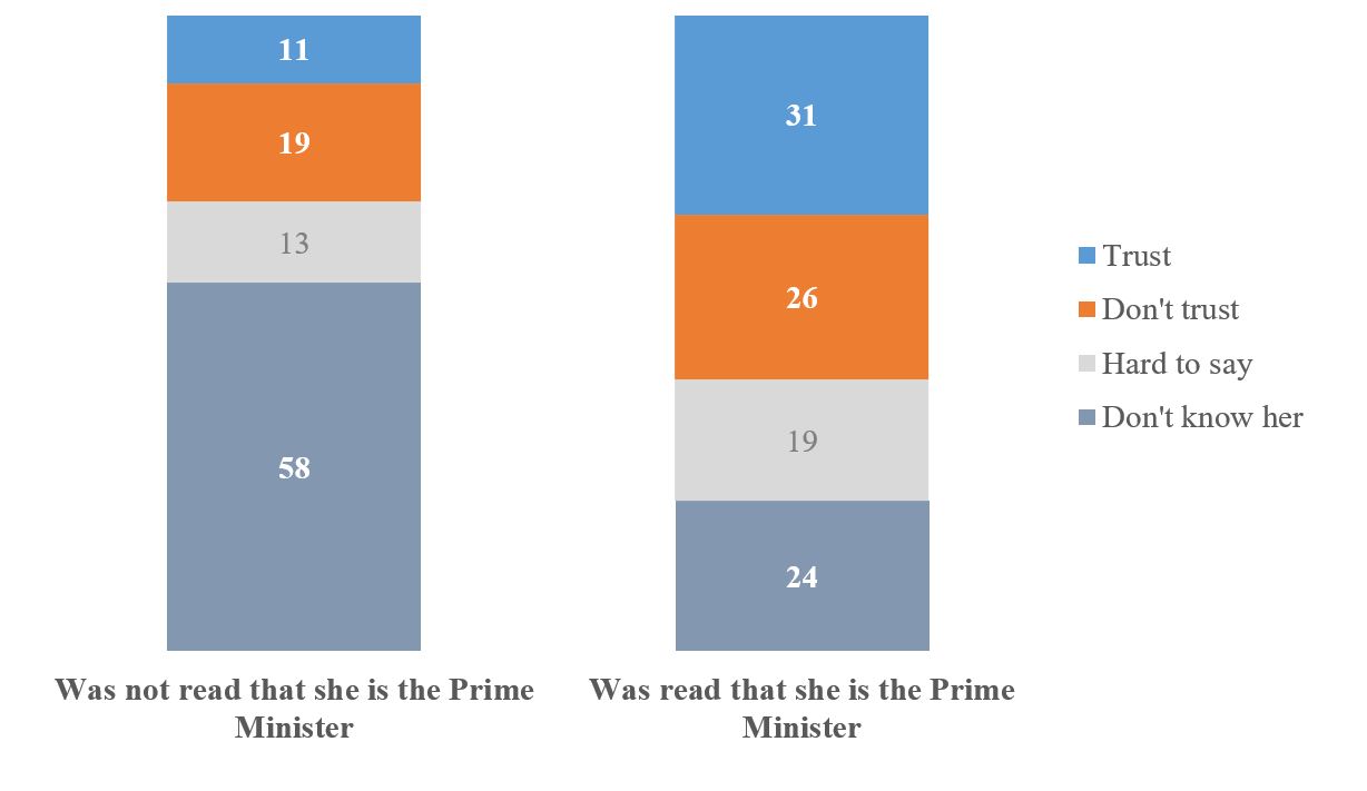 TO ONE RANDOMLY SELECTED HALF OF RESPONDENTS And to what extent do you trust or not trust Yuliia Svyrydenko? DON'T HINT WHO SHE IS!