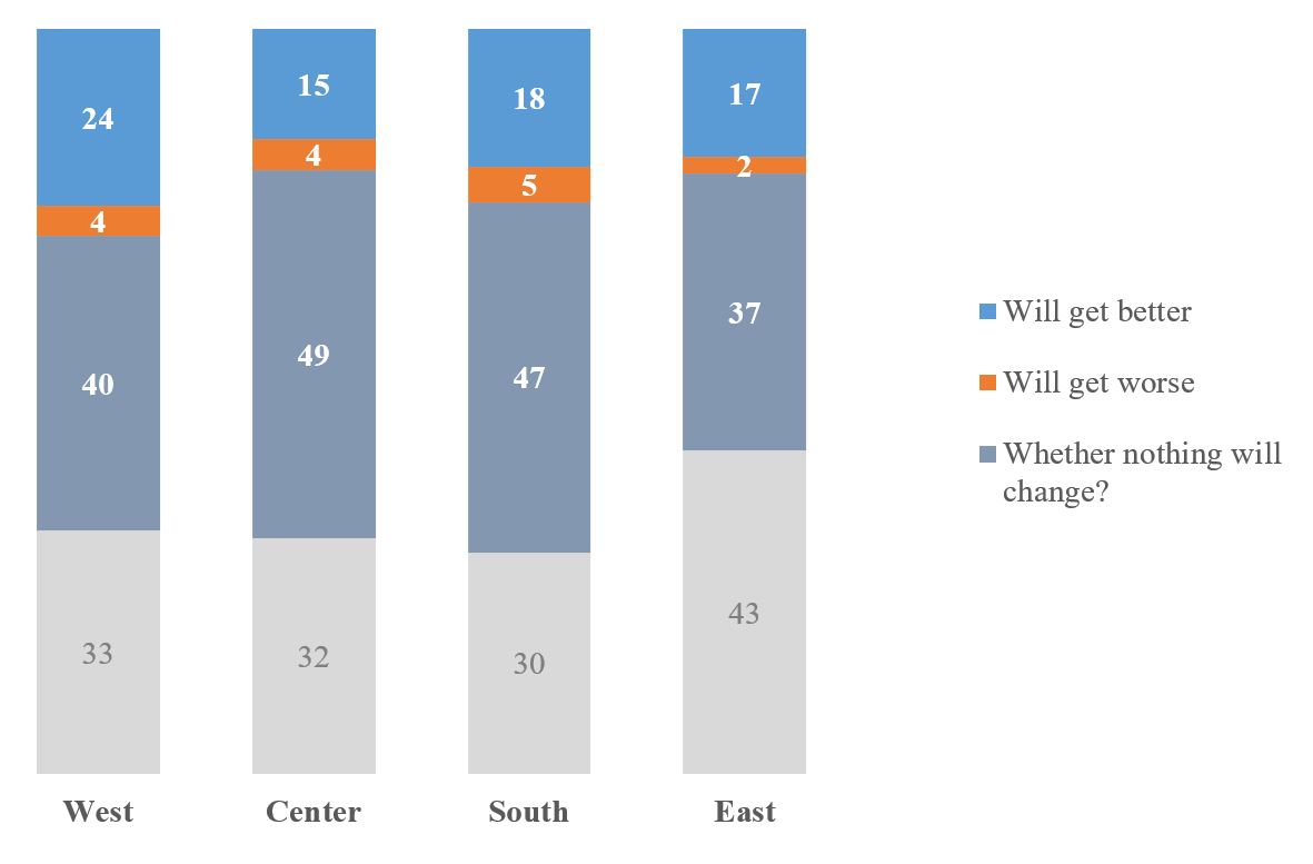 In the graph below, the data are shown in section of regions. In all regions, the situation is that expectations from the Government are mostly neither positive nor negative (although optimism is slightly higher in the West).