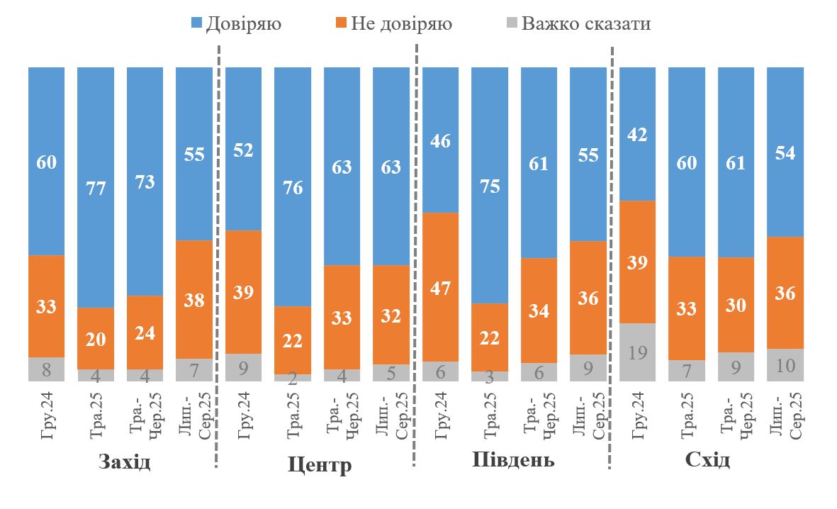 Графік 2. Довіра до Президента В. Зеленського в регіональному вимірі