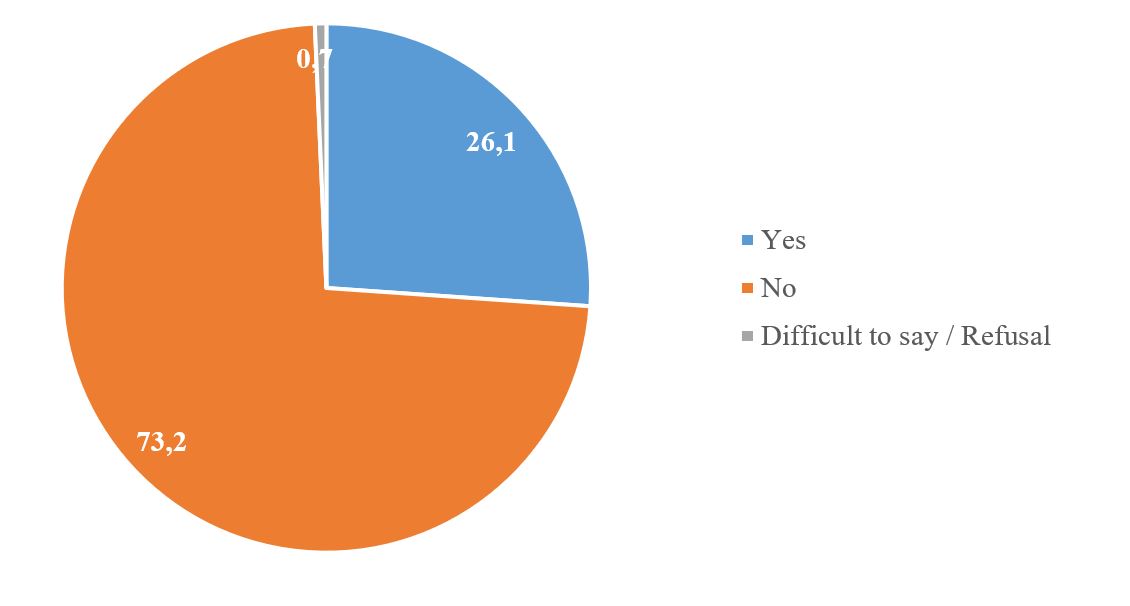 According to 26.1% of respondents, they have faced cases of power outages in their homes since the beginning of the current heating season. Claim that they did not face any outages – 73.2%.