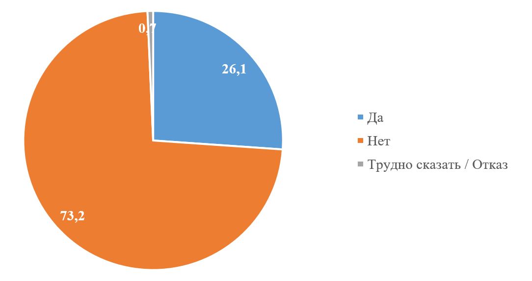 По словам 26,1% респондентов они сталкивались со случаями отключения электроэнергии в своем доме с начала текущего отопительного сезона. Утверждают, что не сталкивались с отключениями – 73,2%.