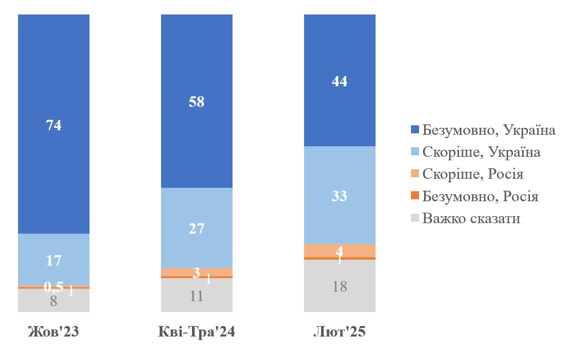 Як Ви відчуваєте, у війні в результаті переможе Україна чи Росія?