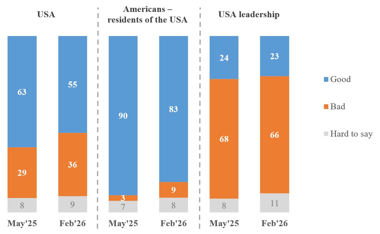 Attitude towards the US in general, Americans, and the US leadership: Results of a survey conducted on February 12-24, 2026