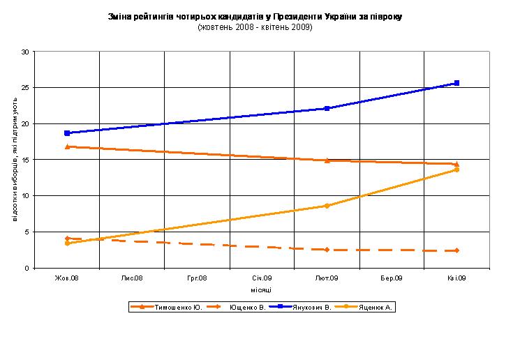 Тенденції змін рейтингів найпопулярніших можливих учасників президентських виборів: жовтень 2008 – квітень 2009