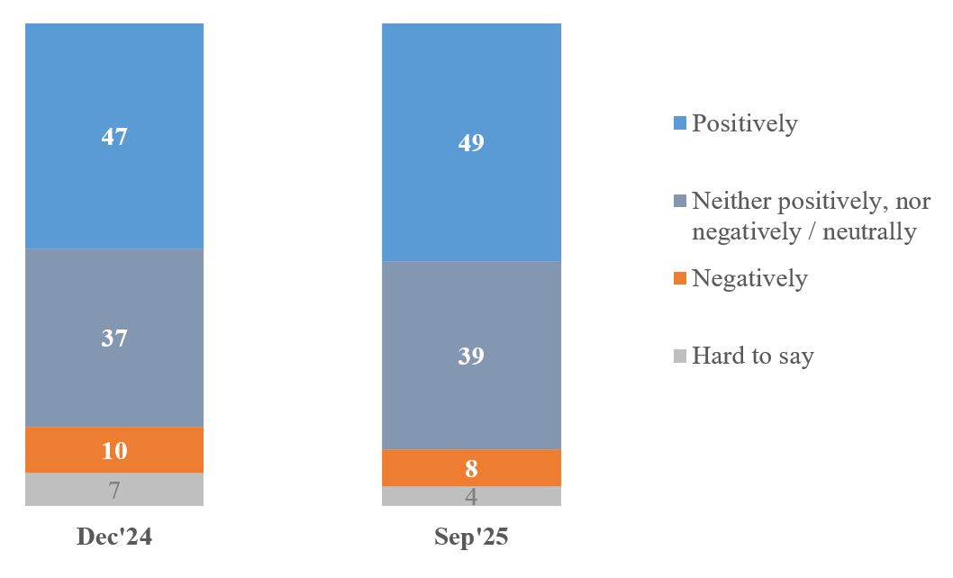 Among Ukrainians, there is a prevailing favorable attitude towards the idea of creating a Government of National Unity based on a broad unification of all patriotic forces in and outside parliament. So, 49% of respondents said they had a positive attitude towards such an idea. On the other hand, only 8% had a negative attitude. The remaining respondents have either a neutral (39%) or undecided (4%) attitude.