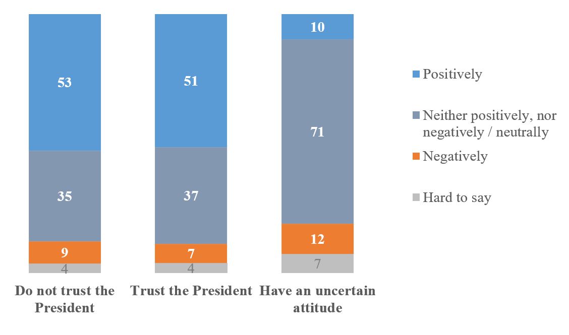 Both among those who trust President Volodymyr Zelenskyy and among those who do not trust him, the attitude towards the idea of a Government of National Unity is quite favorable.