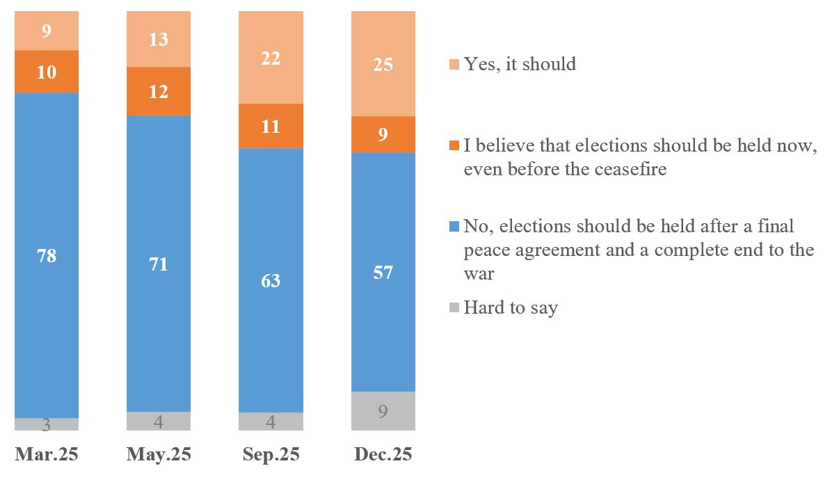* The option “hard to say” was not read to respondents. It was only marked if the respondent requested it. Attitude towards holding national elections