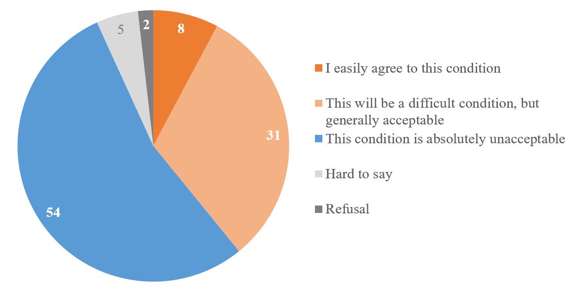 Now I will read a possible condition for achieving peace, and you tell me how acceptable it is to you. Use the scale “I easily agree with this condition”, “This will be a difficult condition, but generally acceptable”, “This condition is absolutely unacceptable”.