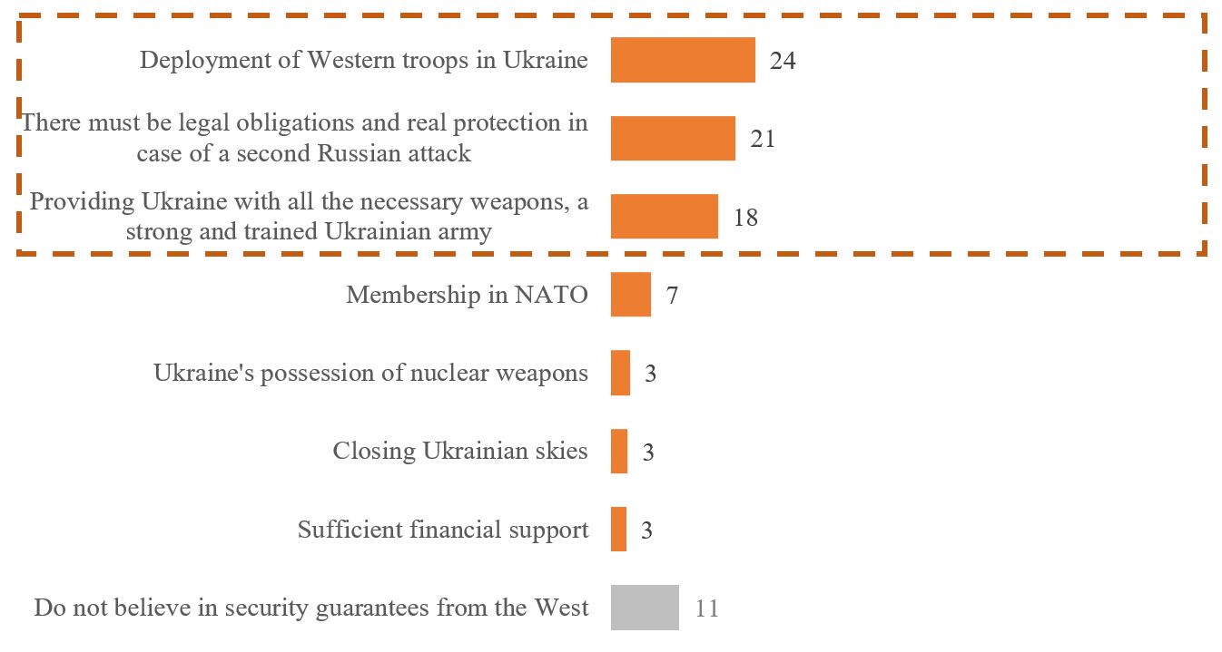 Graph 7. And what security guarantees from the USA and Europe would you consider sufficient to trust them? Open question, top answers, % among those who can agree to such a condition