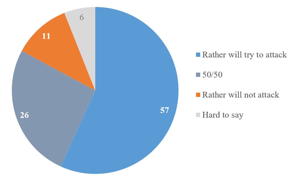 Graph 9. Imagine a ceasefire being declared along the current front line and the US and Europe providing security guarantees to Ukraine. In your opinion, would Russia then try to attack Ukraine again or not?
