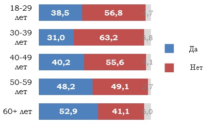 Уровень готовности к вакцинации, по возрасту: