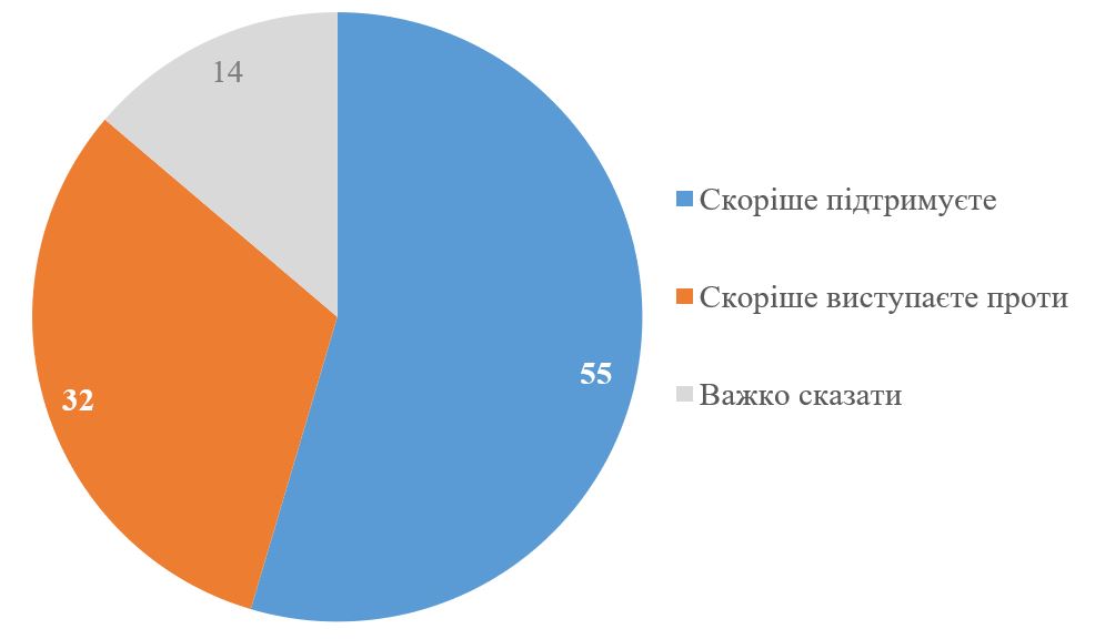 Серед українців немає однозначної думки щодо референдуму про мирну угоду. З одного боку, 55% підтримують проведення референдуму, тобто трохи більше половини. З іншого боку, лише трохи менше або виступають проти (32%), або мають сумніви (14%).