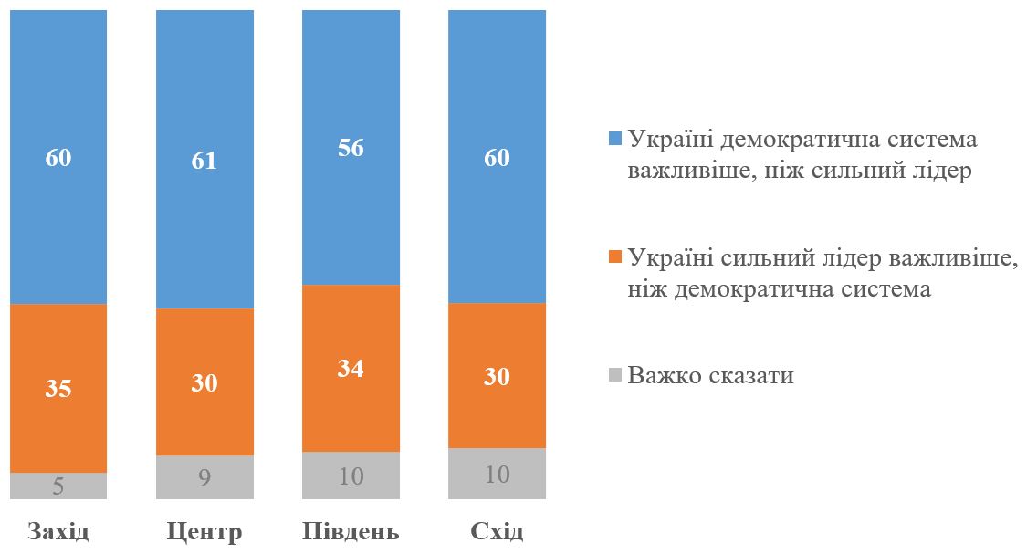 Графік 4. Пріоритетність демократичної системи чи сильного лідера в регіональному вимірі