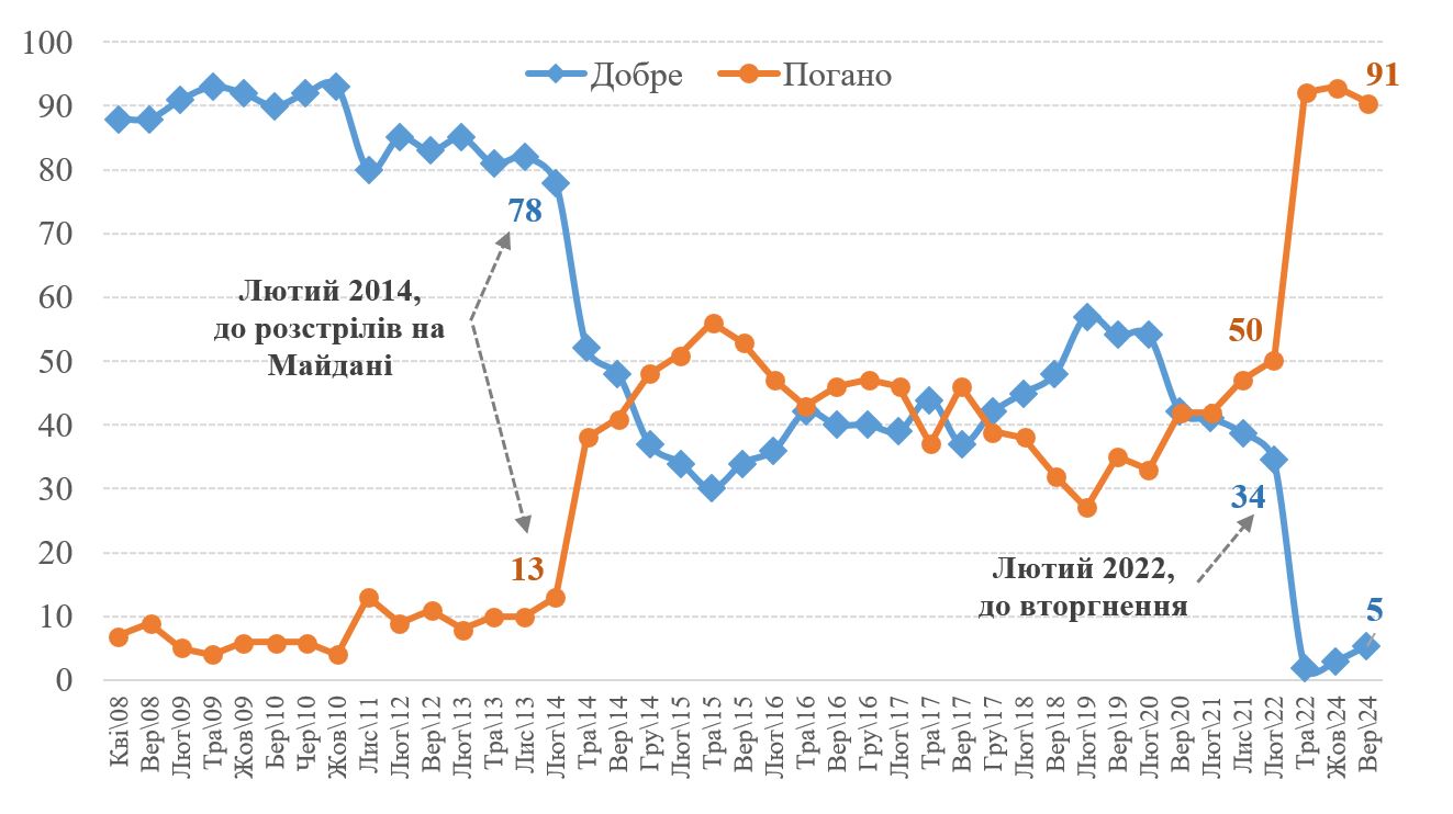 Графік 1. Динаміка ставлення до Росії, 2008-2024 роки