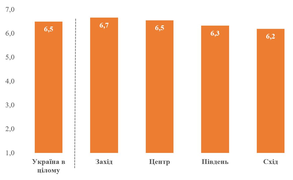 У нашому іншому опитуванні у вересні-жовтні 2025 року ми досліджували ставлення до росіян методом шкали Богардуса (більш детальні результати щодо міжетнічних відносин будуть оприлюднені КМІС пізніше). Так, для певної групи (як-от росіян-жителі Росії) респонденти мають відповісти, наскільки близькі стосунки вони готові допустити з представниками цієї групи. Це називається соціальною дистанцією. Мінімальна соціальна дистанція – 1 (згоден допустити як члена родини), максимальна – 7 (не пускав би в Україну). Можна розраховувати індекс, який буде змінюватися від 1 до 7, де 7 буде відповідати максимальній дистанції до цієї групи. Для розуміння контексту: у 2013 році ми запитували про в цілому ставлення до росіян, і тоді значення індексу становило 2.7 (що свідчило про високу відкритість українців до росіян). Краще ставлення було лише до українськомовних українців (2.0) і до російськомовних українців (2.3). Тобто росіяни були дуже близькі і йшли одразу за українцями. Станом на вересень 2025 року значення індексу щодо росіян-мешканців Росії – 6.5. Причому ситуація майже подібна у всіх регіонах – 6.7 на Заході, 6.5 у Центрі, 6.3 на Півдні, 6.2 на Сході. Фактично 82% серед усіх респондентів (83% на Заході, 84% у Центрі, 76% на Півдні і 78% на Сході) відповіли, що росіян-мешканців Росії взагалі не можна пускати до України. У 2024 році показники були майже ідентичними, тобто серед українців має місце дуже критичне ставлення до росіян-мешканців Росії, причому у всіх регіонах – зокрема, і на Сході.