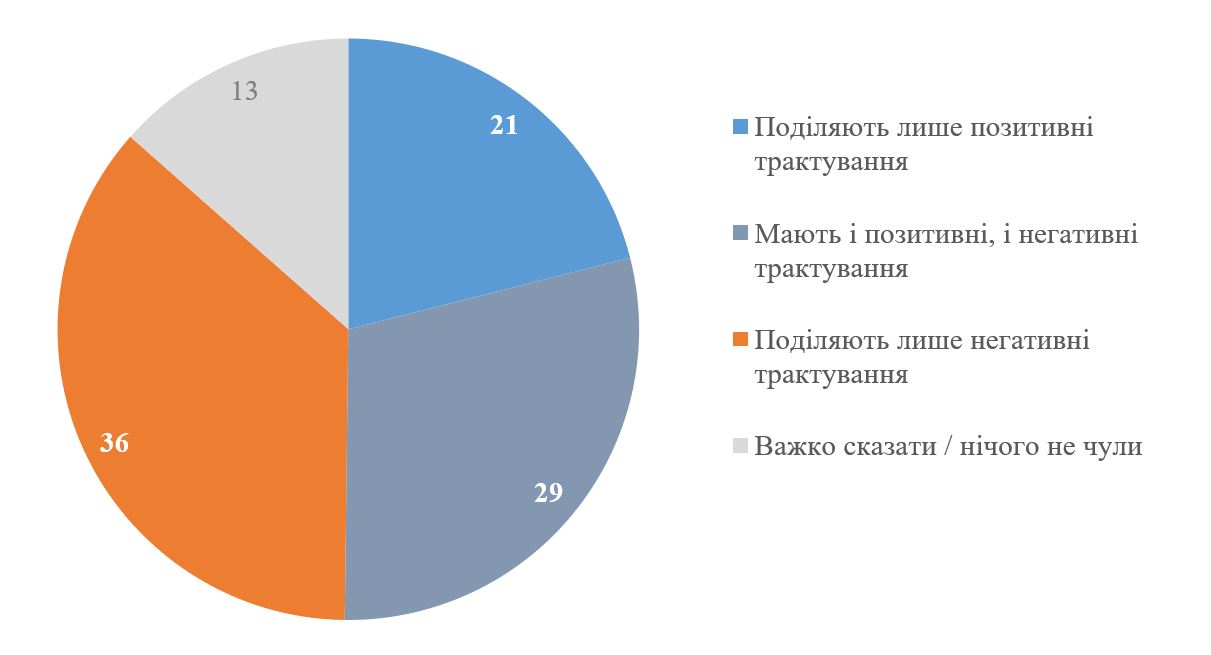 Загалом же 3 пояснення можуть вважатися умовно позитивними для США (тиск на Китай / Росію, наркоторгівля, встановлення демократії, а 2 – умовно негативними (захоплення ресурсів і робота на свій рейтинг). Як можна бачити на графіку нижче, 29% респондентів поділяють водночас і певні позитивні, і певні негативні трактування дій у Венесуелі. Поділяють лише негативні трактування – 36%, лише позитивні – 21%. Тобто загалом 65% згодні принаймні з одним негативним поглядом на дії, але й є 50%, які згодні принаймні з одним позитивним поглядом.